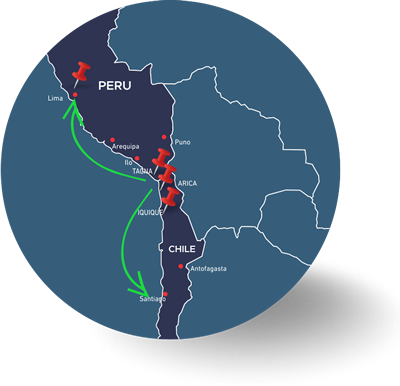 Nuestros clientes pueden almacenar sus bienes ingresados al pa铆s al terminal aduanero en el Per煤 o dep贸sito franco p煤blico en la Zona Franca de Iquique (Chile) o Zona Franca de Tacna (Per煤), efectuando el pago de derechos al momento de la nacionalizaci贸n parcial o total de la mercanc铆a.